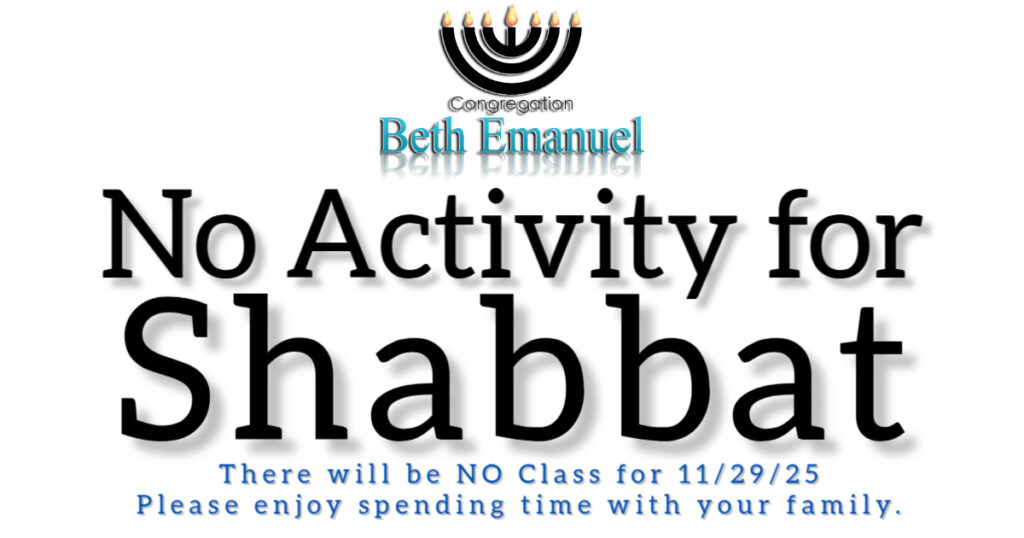 This coming Saturday, 11 AM Shabbat Service on 11/29/25
