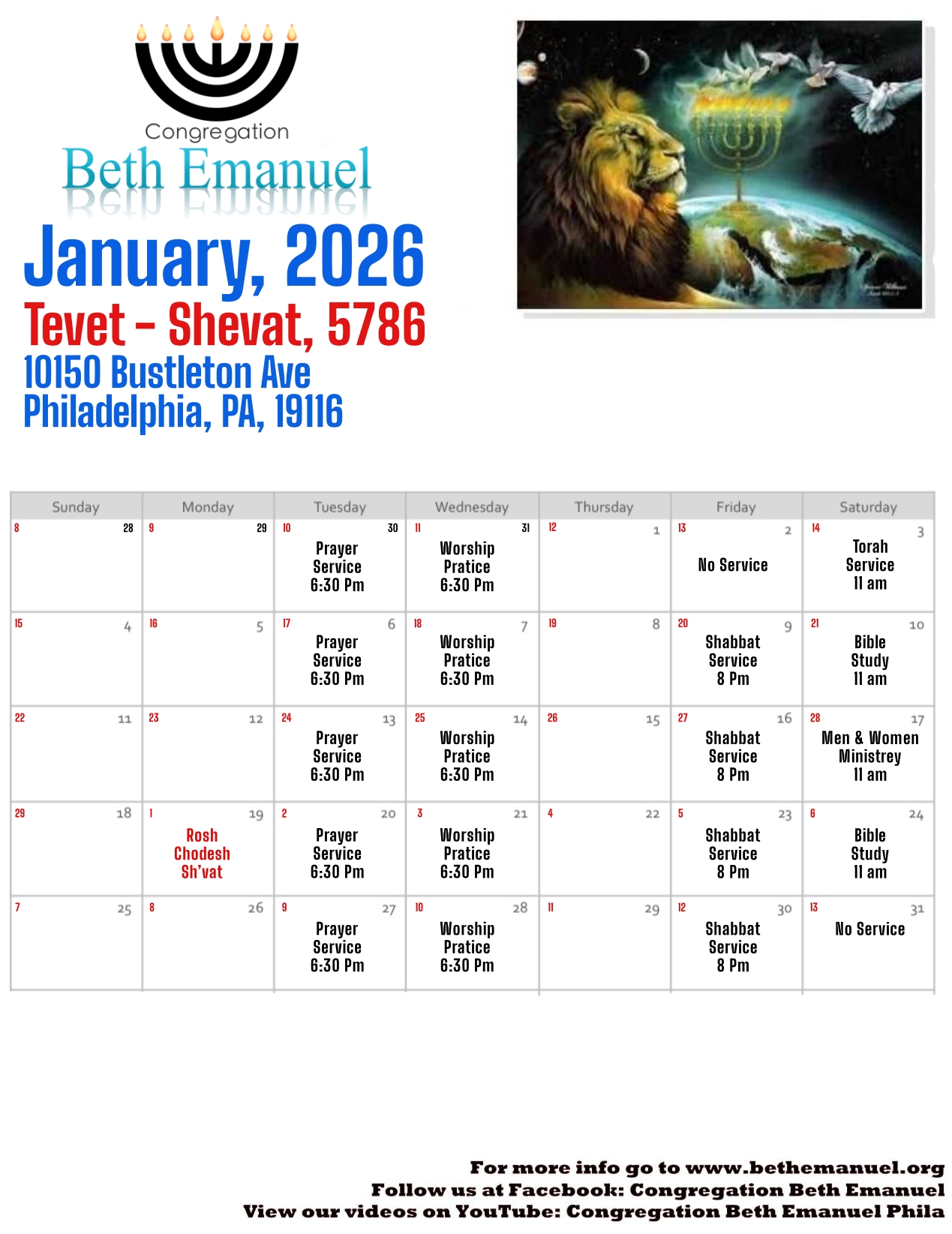 This Coming Friday 8pm Erev Shabbat Service – 1/23/26